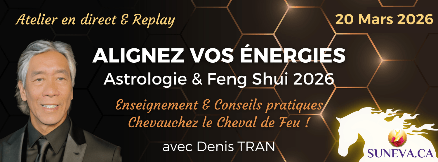 Cet atelier en ligne vous permettra d'aligner vos propres énergies et celles de votre maison avec les flux spécifiques de cette année 2026 ! En associant enseignement, pratiques accessibles et mini-consultations, Denis TRAN, astrologue, énergéticien et maitre Qi-Gong, vous aide à chevaucher le Cheval de Feu plutôt que d'en faire les frais !